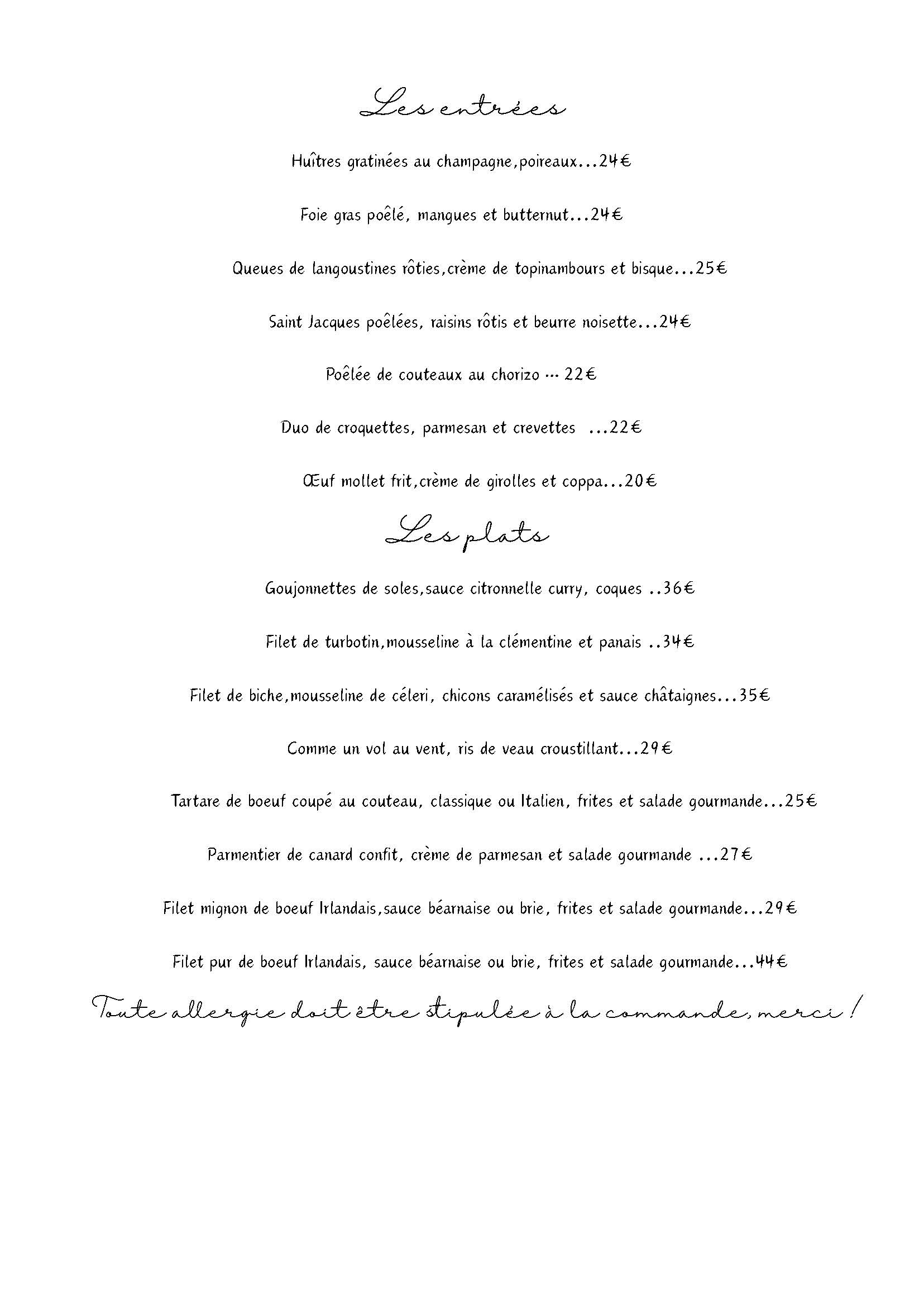Notre philosophie est de cuisiner les produits du moment. Notre carte évolue chaque semaine en fonction du marché. Entrée , plat en fonction du marché 30 € Uniquement le Plat 20 € Ouvert de 12h à 13h30 et de 19h à 21h Réservations par téléphone (010) 45 35 85 ou via la page Réservations info@tilleuls.be Inscrivez-vous à notre newsletter pour être informé de nos changements de menu et de notre actualité.Resto